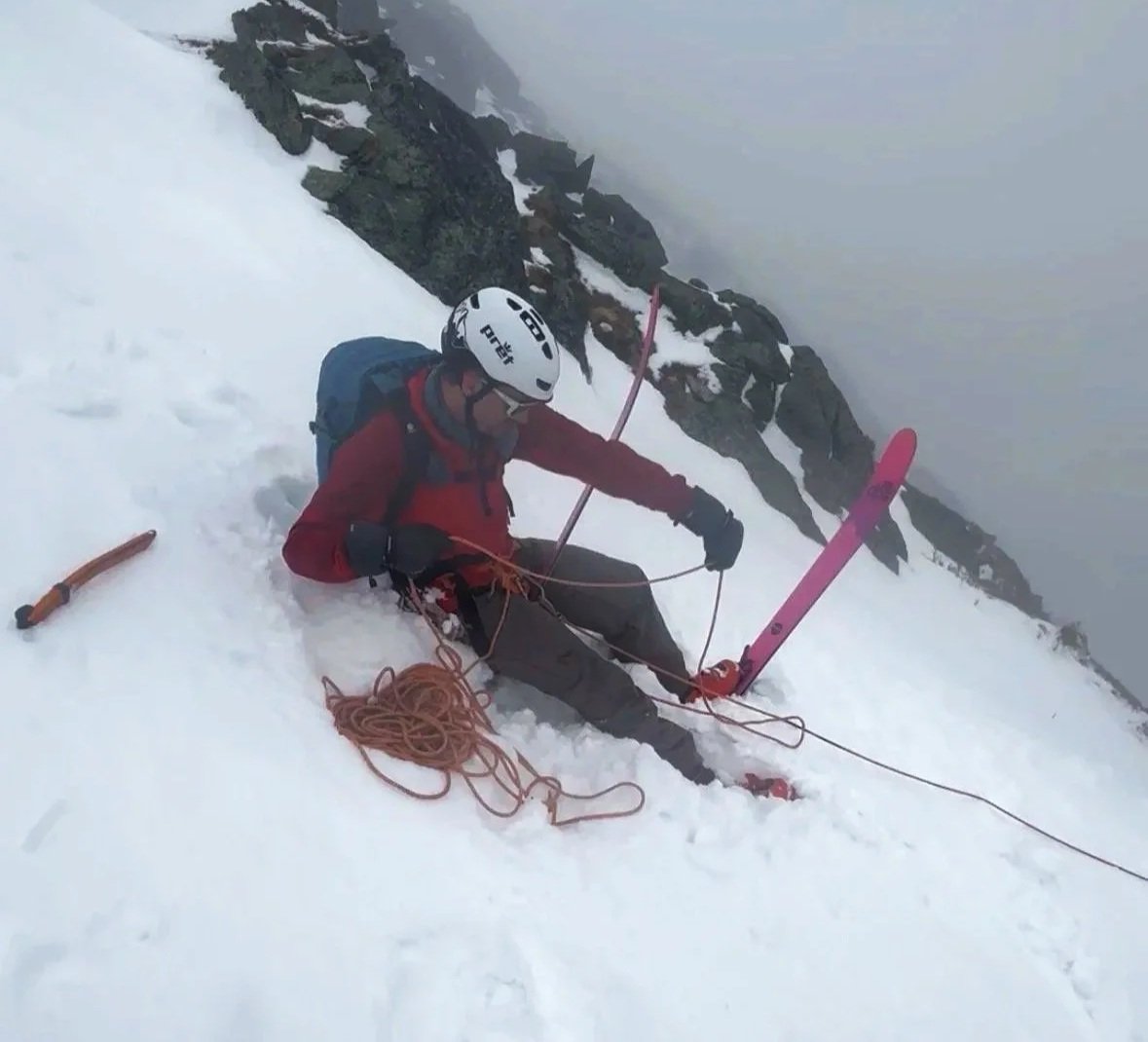 Why it matters: A rope kit allows for rappels into couloirs, glacier travel, cornice management, and safe navigation of exposed sections. Most days it stays in your pack—but when you need it, you really need it.